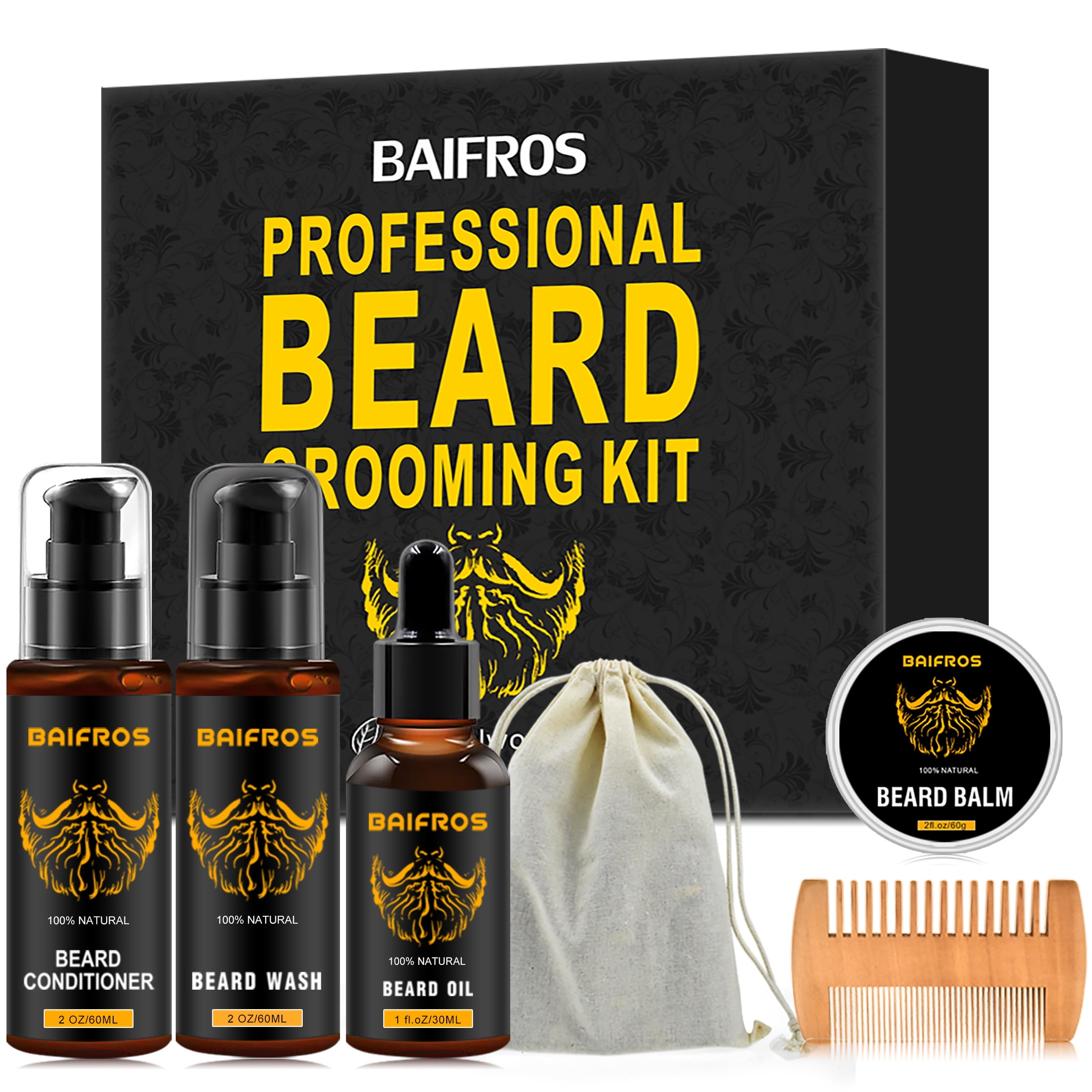 Baifros Beard Grooming Kit For Men Care W Beard Wash Shampoo Unscented Beard Growth Oil Walmart Com